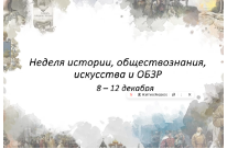 С 8 по 12 декабря в нашей школе пройдёт Предметная неделя истории, обществознания, искусства и ОБЗР.